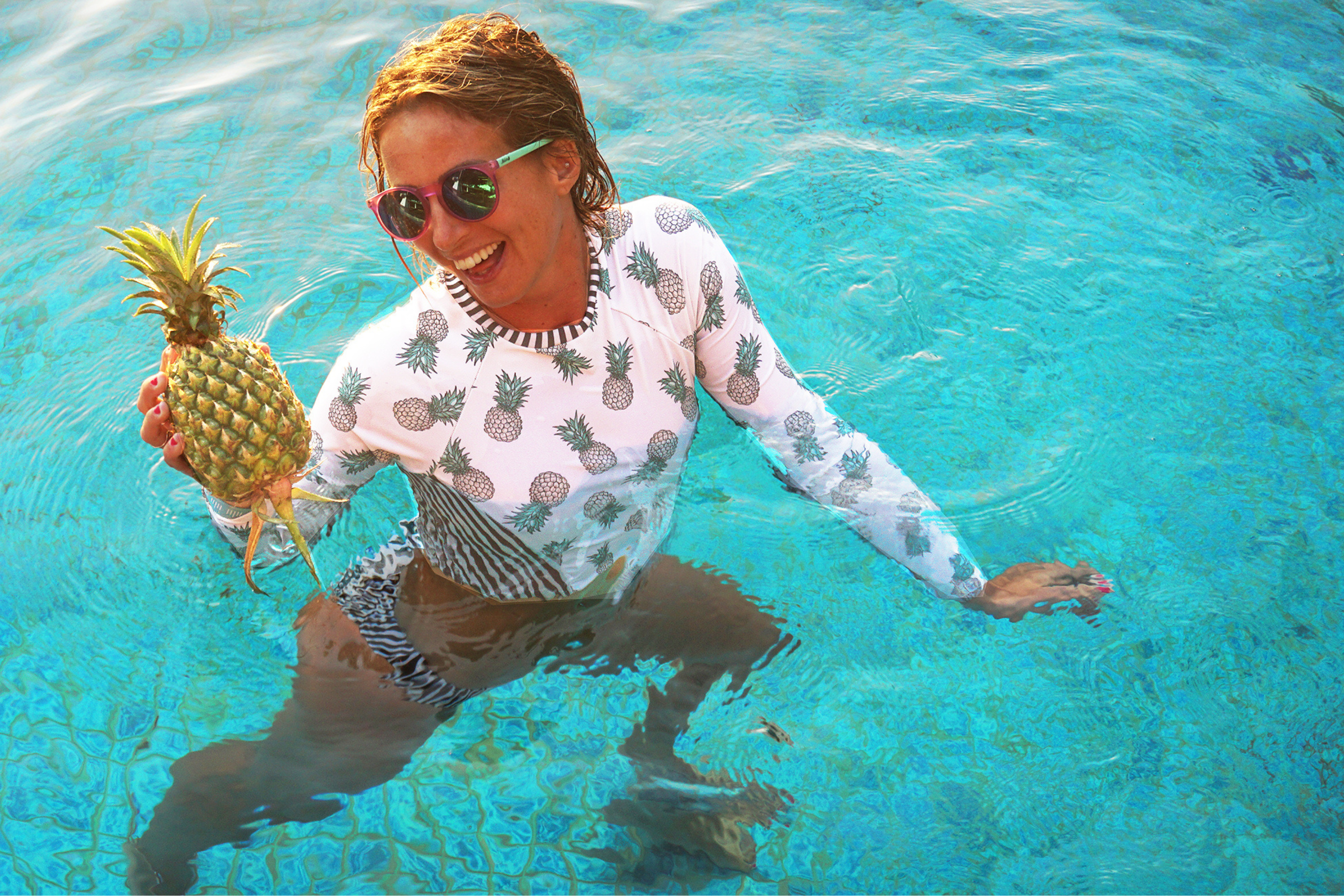 I am so in love with my pineapple surf suit!! It is made from recycled plastics and the fabric is so soft and the cut and shape of the suit is super flattering. Sizing is true and as a curvy girl I needed a few extra kisses in the label to get all the lumps and bumps in and this suit makes me feel super confident.