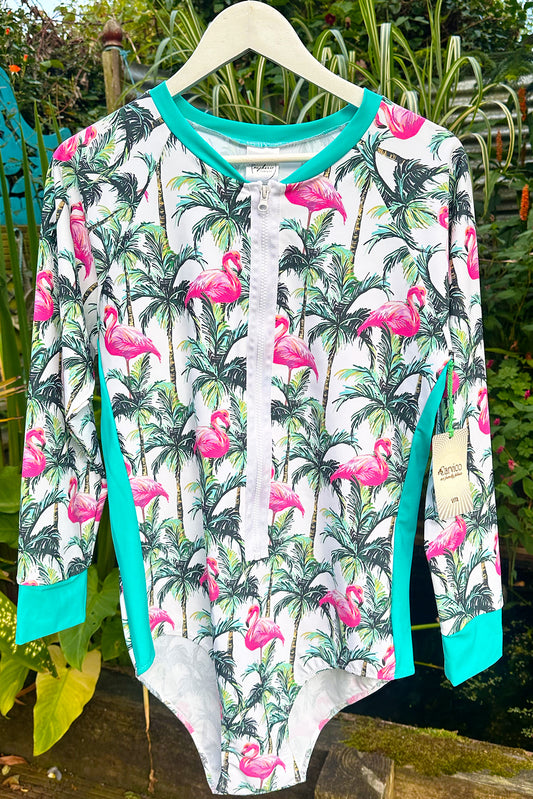 LET'S FLAMINGO! Tropical Flamingo Long-Sleeved Surfsuit